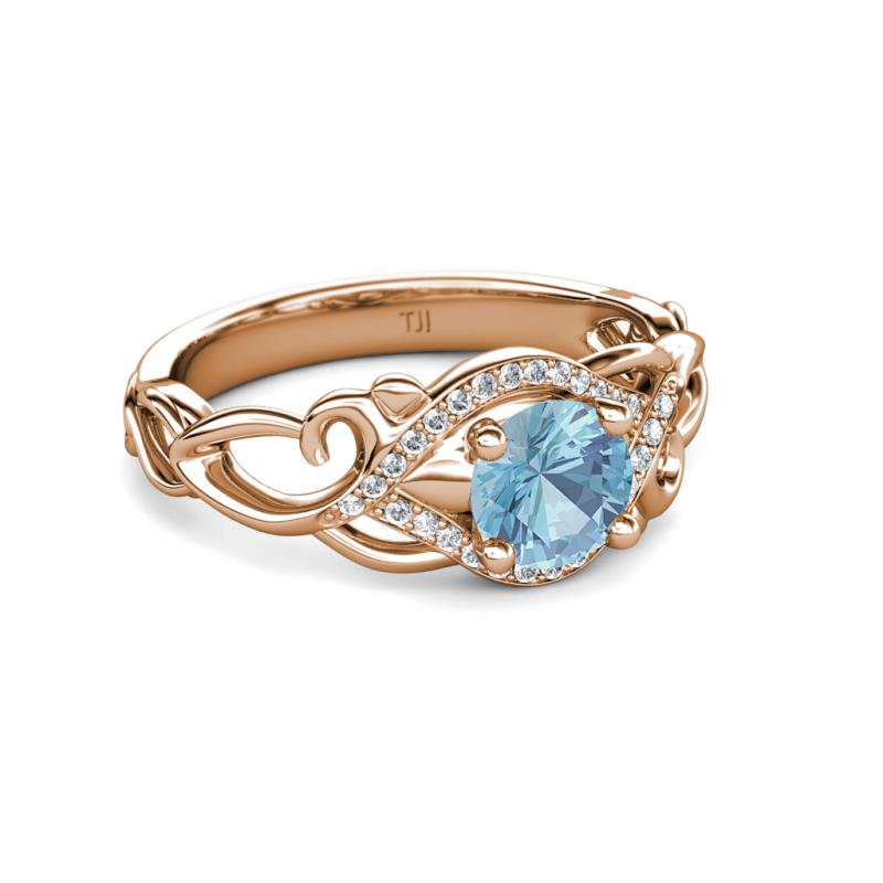 1 ctw Round Aquamarine and Diamond Swirl Womens Engagement Ring 18K Rose Gold More Details ...