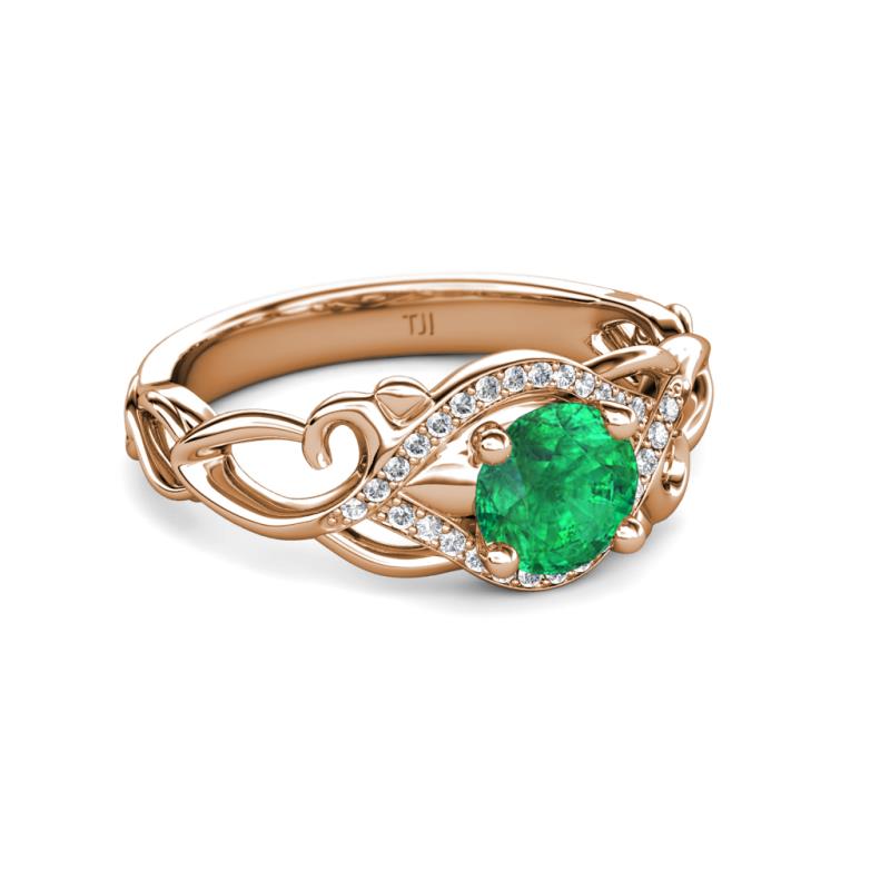 7/8 ctw Round Emerald and Diamond Swirl Womens Engagement Ring 14K Rose Gold More Details ...