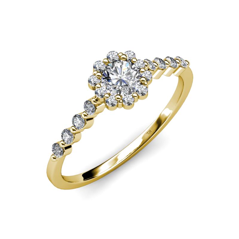 1.09 ctw IGI Certified Lab Grown Diamond Round (5.80 mm) & Natural Diamond Round (1.60 mm) Prong set Women Halo Engagemnet Ring in 18K Yellow Gold. More Details ...