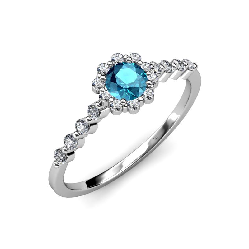 London Blue Topaz and Diamond Floral Womens Halo Engagement Ring 1.14 ctw 18K White Gold More Details ...
