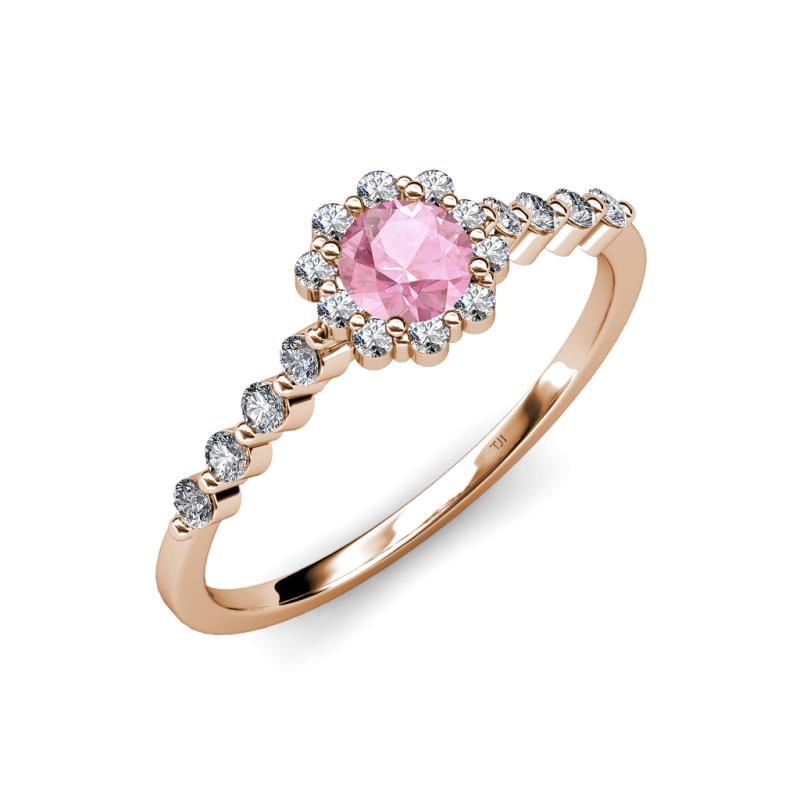 Pink Tourmaline and Diamond Floral Womens Halo Engagement Ring 1.04 ctw 14K Rose Gold More Details ...