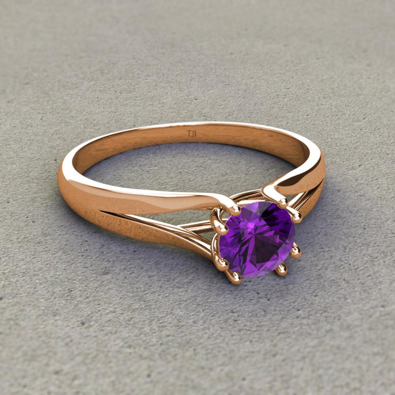 Propose to the one you Love with this 0.87 ct Solitaire Ring in which the 8 prong adorably holds a Amethyst with the beautiful split shank of the Ring making it an ultimate expression of Love.