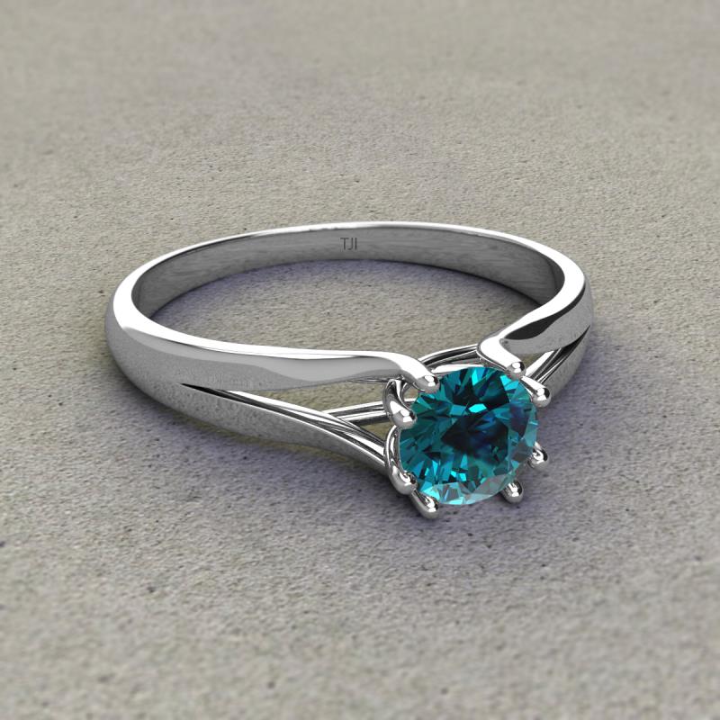 Propose to the one you Love with this 0.90 ct Solitaire Ring in which the 8 prong adorably holds a Blue Diamond with the beautiful split shank of the Ring making it an ultimate expression of Love.