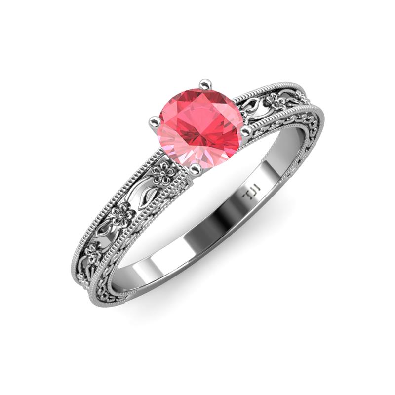 Round Pink Tourmaline Floral Engraved Milgrain Womens Solitaire Engagement Ring 0.87 ct Platinum More Details ...