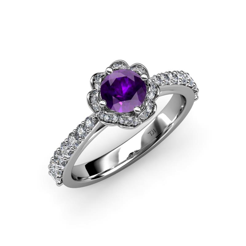 Amethyst and Diamond Floral Womens Halo Engagement Ring 1.25 ctw 14K White Gold More Details ...