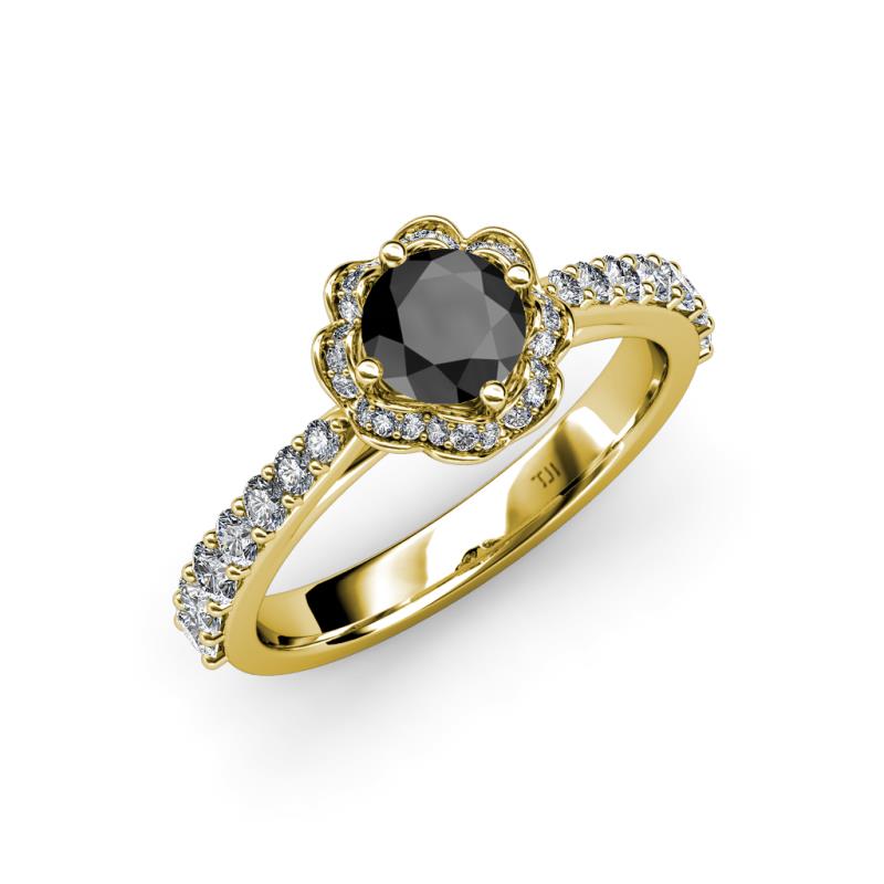 • 1.38 cttw Black and White Diamond Floral Halo Engagement Ring.