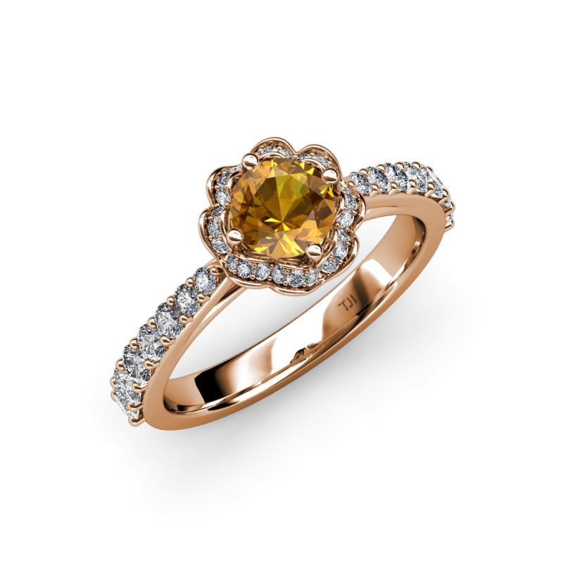 Citrine and Diamond Floral Womens Halo Engagement Ring 1.25 ctw 18K Rose Gold More Details ...