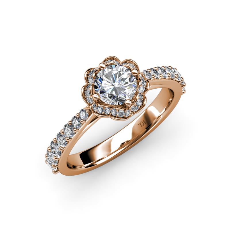 1.38 ctw IGI Certified Lab Grown Diamond Round (6.50 mm) & Natural Diamond Round (1.30 mm) Prong set Floral Halo Engagement Ring in 18K Rose Gold. More Details ...