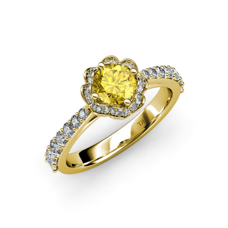Yellow Sapphire and Diamond Floral Womens Halo Engagement Ring 1.33 ctw 14K Yellow Gold More Details ...