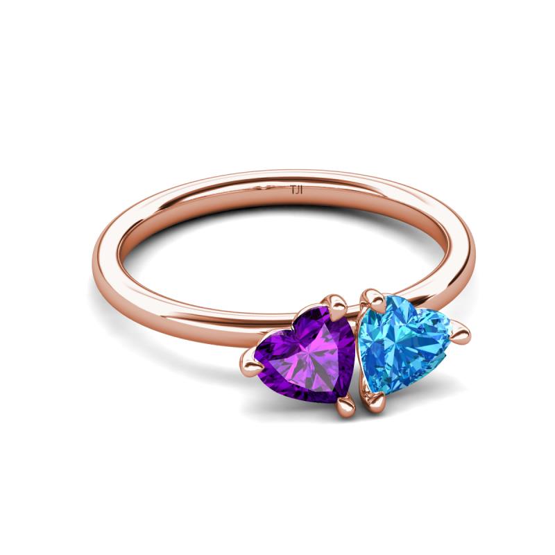 1.68 ctw Heart Shape (6.00 mm) Amethyst & Blue Topaz with Tiger Claw Prong setting Two Stone Duo Women Engagement Ring in 10K Rose Gold More Details ...