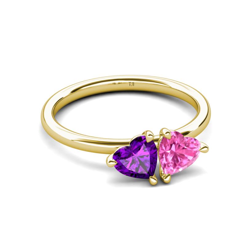 1.58 ctw Heart Shape (6.00 mm) Amethyst & Lab Created Pink Sapphire with Tiger Claw Prong setting Two Stone Duo Women Engagement Ring in 14K Yellow Gold More Details ...