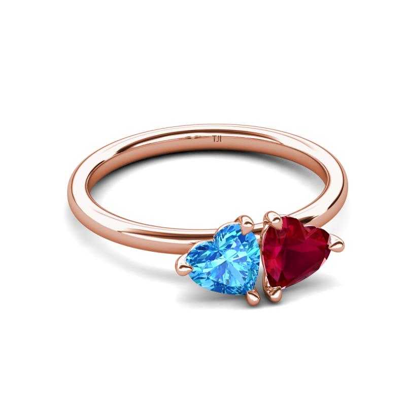1.80 ctw Heart Shape (6.00 mm) Blue Topaz & Lab Created Ruby with Tiger Claw Prong setting Two Stone Duo Women Engagement Ring in 10K Rose Gold More Details ...