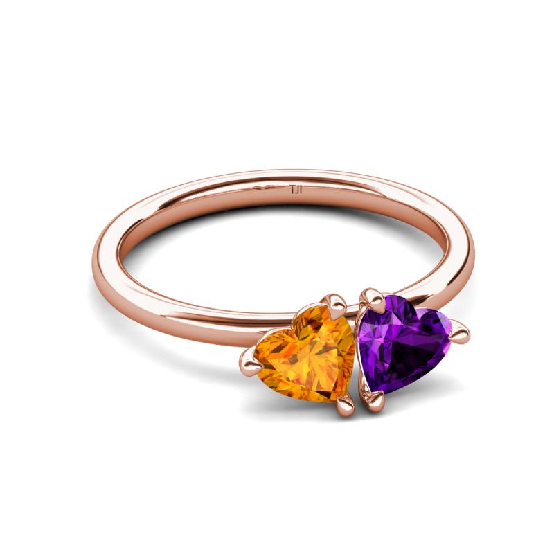 1.36 ctw Heart Shape (6.00 mm) Citrine & Amethyst with Tiger Claw Prong setting Two Stone Duo Women Engagement Ring in 10K Rose Gold More Details ...