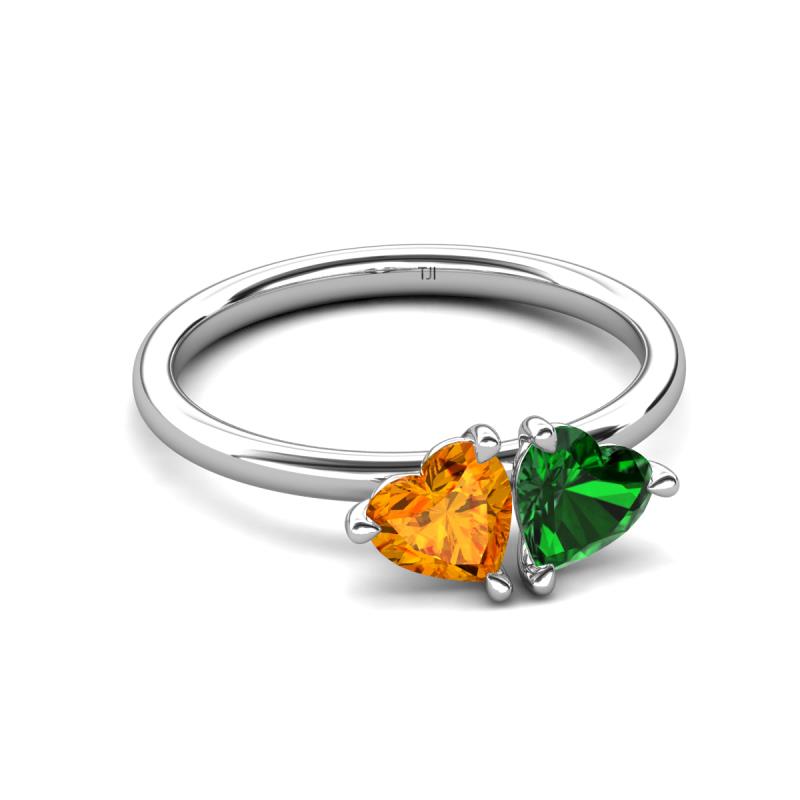 1.43 ctw Heart Shape (6.00 mm) Citrine & Lab Created Emerald with Tiger Claw Prong setting Two Stone Duo Women Engagement Ring in 10K White Gold More Details ...