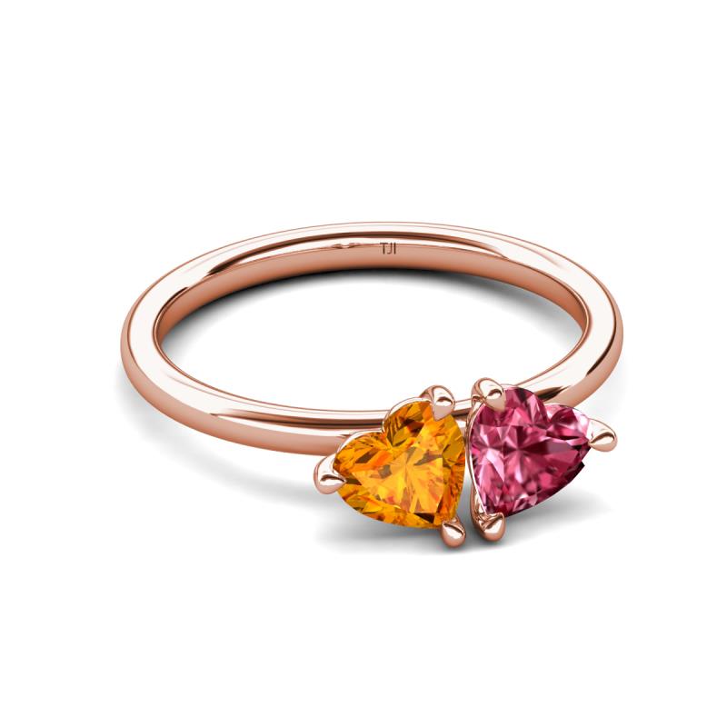 1.48 ctw Heart Shape (6.00 mm) Citrine & Pink Tourmaline with Tiger Claw Prong setting Two Stone Duo Women Engagement Ring in 18K Rose Gold More Details ...