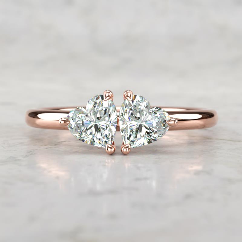 1.70 ctw Heart Shape (6.00 mm) GIA Certified Natural Diamond with Tiger Claw Prong setting Two Stone Duo Women Engagement Ring in 18K Rose Gold More Details ...