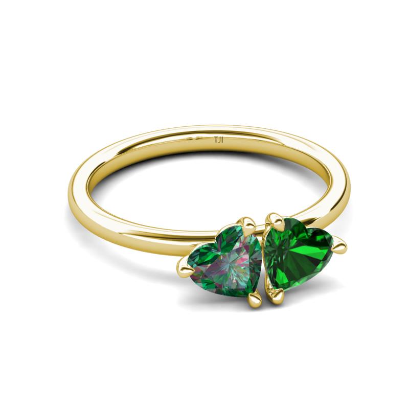 1.50 ctw Heart Shape (6.00 mm) Lab Created Alexandrite & Lab Created Emerald with Tiger Claw Prong setting Two Stone Duo Women Engagement Ring in 10K Yellow Gold More Details ...