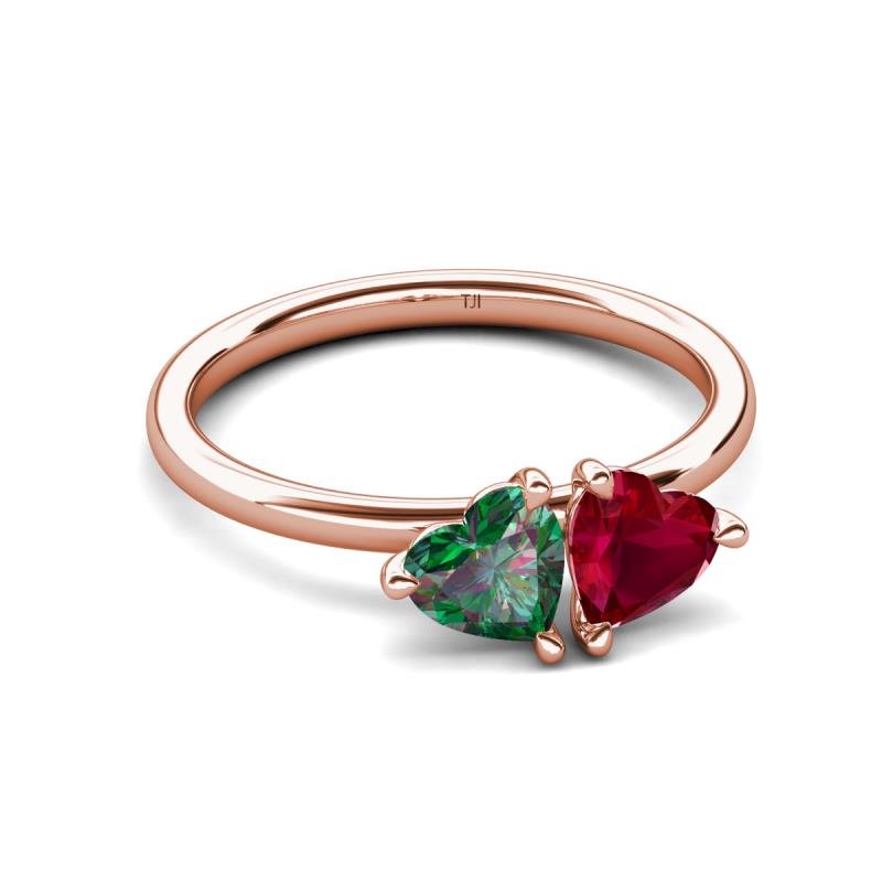 1.55 ctw Heart Shape (6.00 mm) Lab Created Alexandrite & Lab Created Ruby with Tiger Claw Prong setting Two Stone Duo Women Engagement Ring in 10K Rose Gold More Details ...