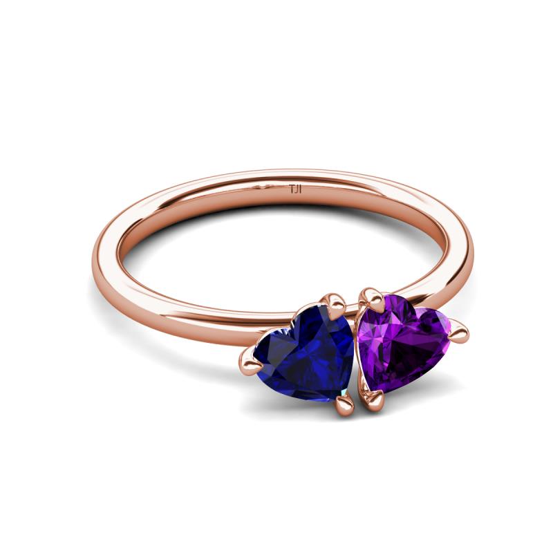 1.58 ctw Heart Shape (6.00 mm) Lab Created Blue Sapphire & Amethyst with Tiger Claw Prong setting Two Stone Duo Women Engagement Ring in 18K Rose Gold More Details ...