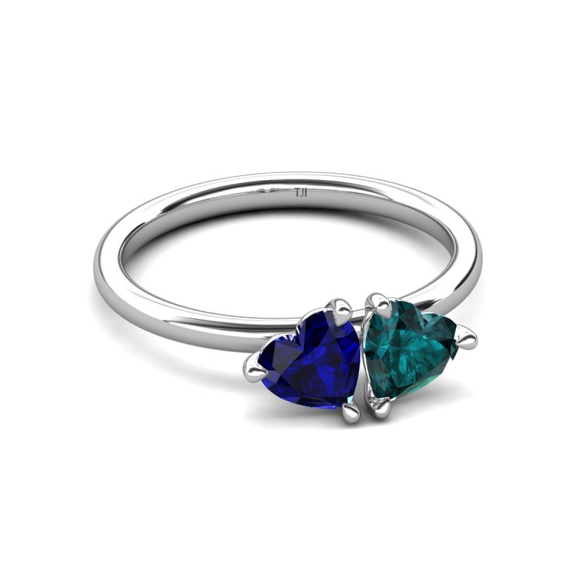 1.90 ctw Heart Shape (6.00 mm) Lab Created Blue Sapphire & London Blue Topaz with Tiger Claw Prong setting Two Stone Duo Women Engagement Ring in 10K White Gold More Details ...