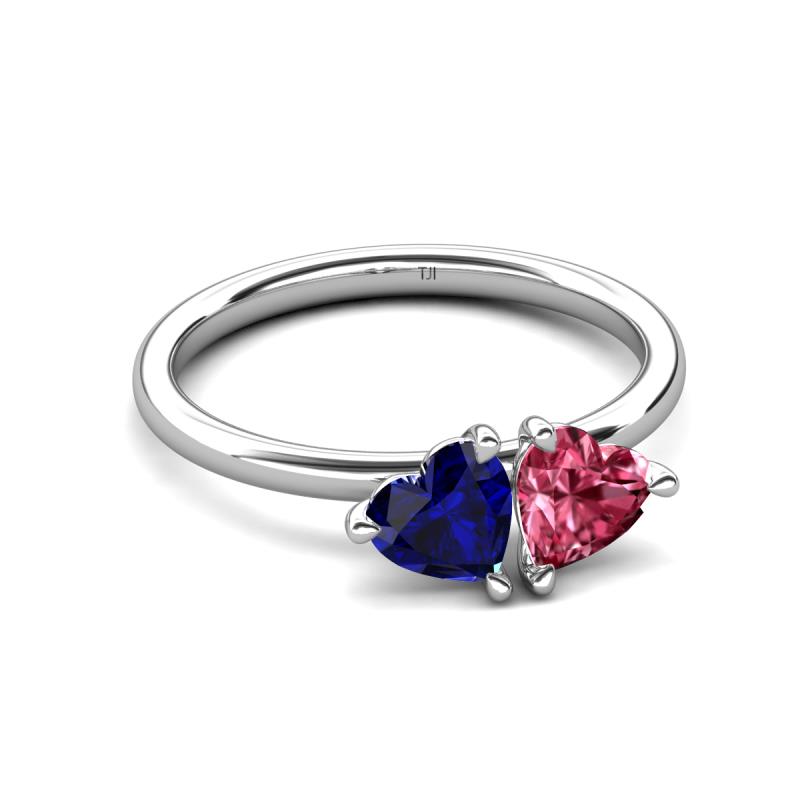 1.70 ctw Heart Shape (6.00 mm) Lab Created Blue Sapphire & Pink Tourmaline with Tiger Claw Prong setting Two Stone Duo Women Engagement Ring in 18K White Gold More Details ...