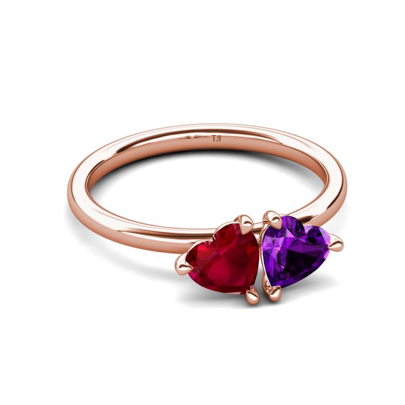 1.48 ctw Heart Shape (6.00 mm) Lab Created Ruby & Amethyst with Tiger Claw Prong setting Two Stone Duo Women Engagement Ring in 18K Rose Gold More Details ...