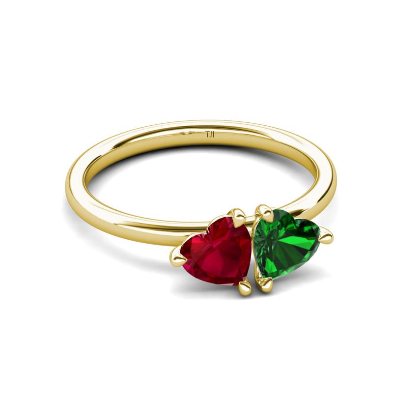 1.55 ctw Heart Shape (6.00 mm) Lab Created Ruby & Lab Created Emerald with Tiger Claw Prong setting Two Stone Duo Women Engagement Ring in 18K Yellow Gold More Details ...