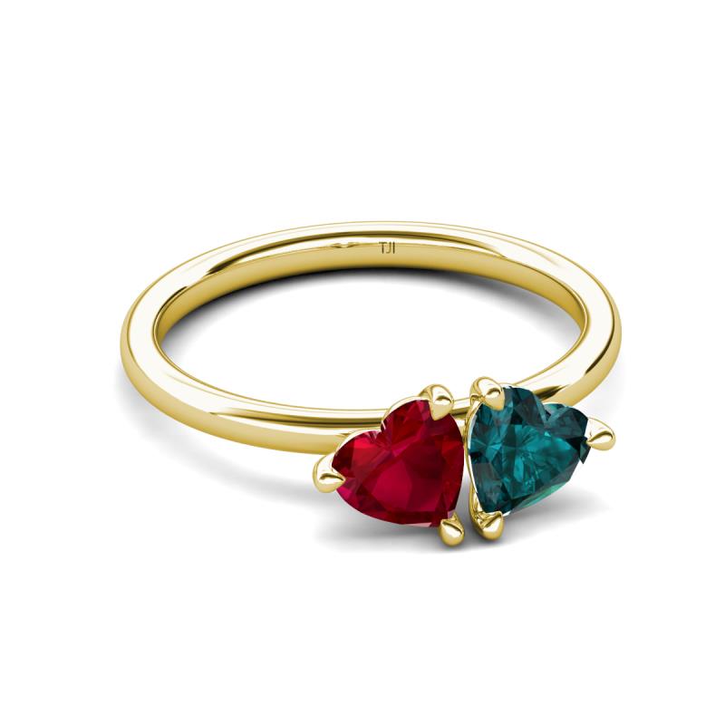1.80 ctw Heart Shape (6.00 mm) Lab Created Ruby & London Blue Topaz with Tiger Claw Prong setting Two Stone Duo Women Engagement Ring in 10K Yellow Gold More Details ...
