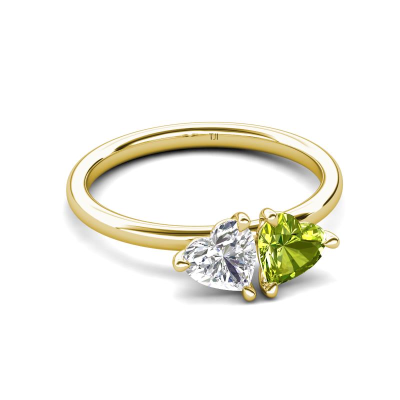 1.85 ctw Heart Shape (6.00 mm) Lab Created White Sapphire & Peridot with Tiger Claw Prong setting Two Stone Duo Women Engagement Ring in 18K Yellow Gold More Details ...
