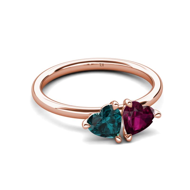 2.10 ctw Heart Shape (6.00 mm) London Blue Topaz & Rhodolite Garnet with Tiger Claw Prong setting Two Stone Duo Women Engagement Ring in 10K Rose Gold More Details ...