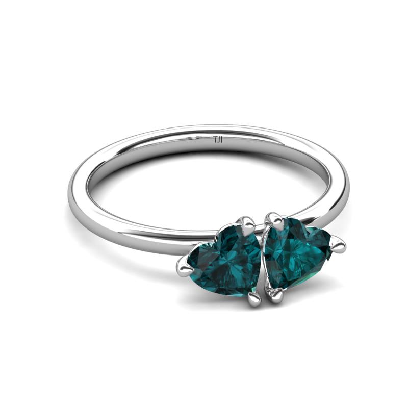 Celebrate your love with this stunning ring of 2.00 ctw features two heart-shaped London Blue Topaz nestled together in a "toi et moi" design & the unique tiger claw prong setting adds a touch of edginess and modernity to the classic design symbolizing the unity and connection between two people in love & a perfect choice for the fashion-forward bride.