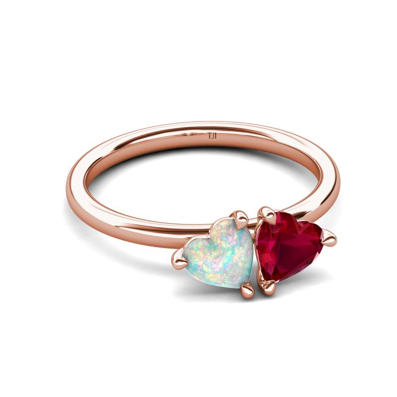 1.25 ctw Heart Shape (6.00 mm) Opal & Lab Created Ruby with Tiger Claw Prong setting Two Stone Duo Women Engagement Ring in 14K Rose Gold More Details ...