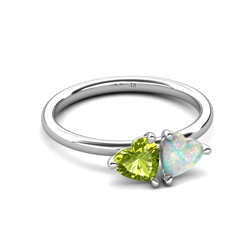 1.40 ctw Heart Shape (6.00 mm) Peridot & Opal with Tiger Claw Prong setting Two Stone Duo Women Engagement Ring in 14K White Gold More Details ...