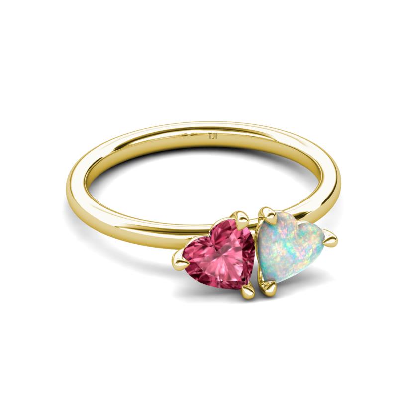 1.25 ctw Heart Shape (6.00 mm) Pink Tourmaline & Opal in Tiger Claw Prong setting Two Stone Duo Women Engagement Ring in 10K Yellow Gold More Details ...