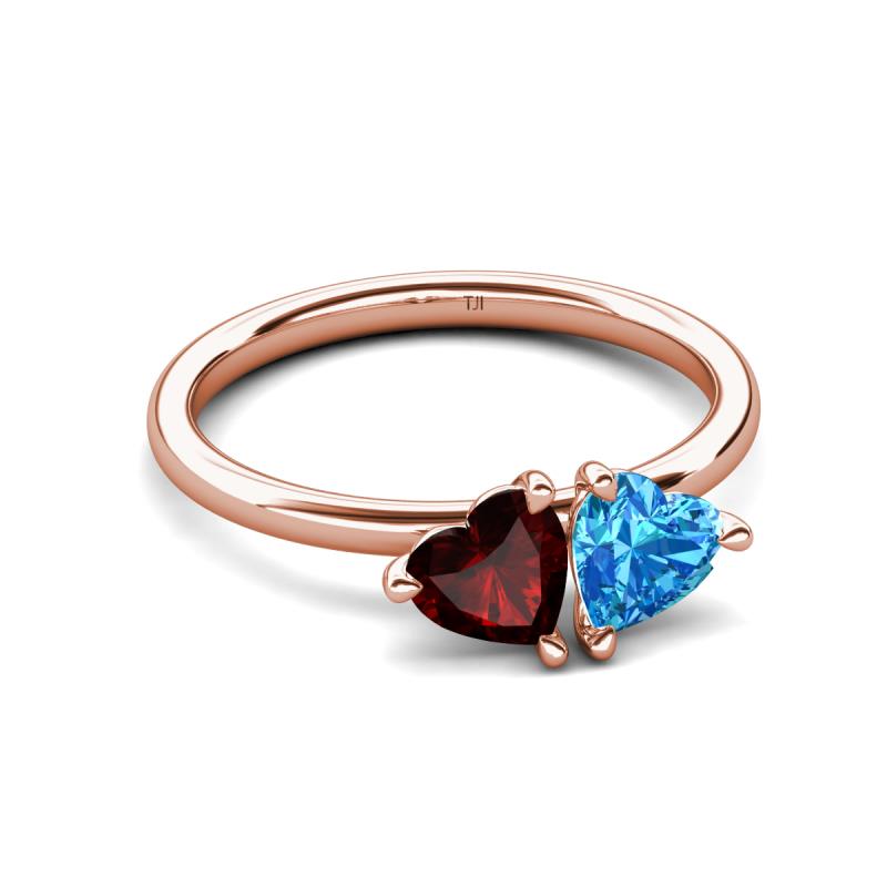 1.95 ctw Heart Shape (6.00 mm) Red Garnet & Blue Topaz with Tiger Claw Prong setting Two Stone Duo Women Engagement Ring in 14K Rose Gold More Details ...