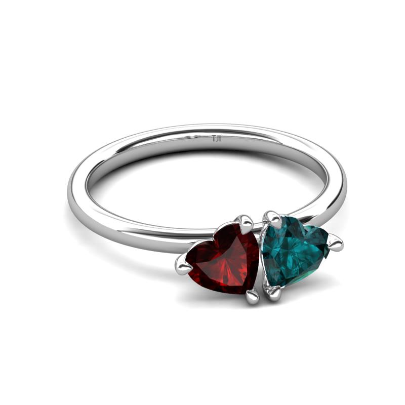 1.95 ctw Heart Shape (6.00 mm) Red Garnet & London Blue Topaz with Tiger Claw Prong setting Two Stone Duo Women Engagement Ring in Platinum More Details ...