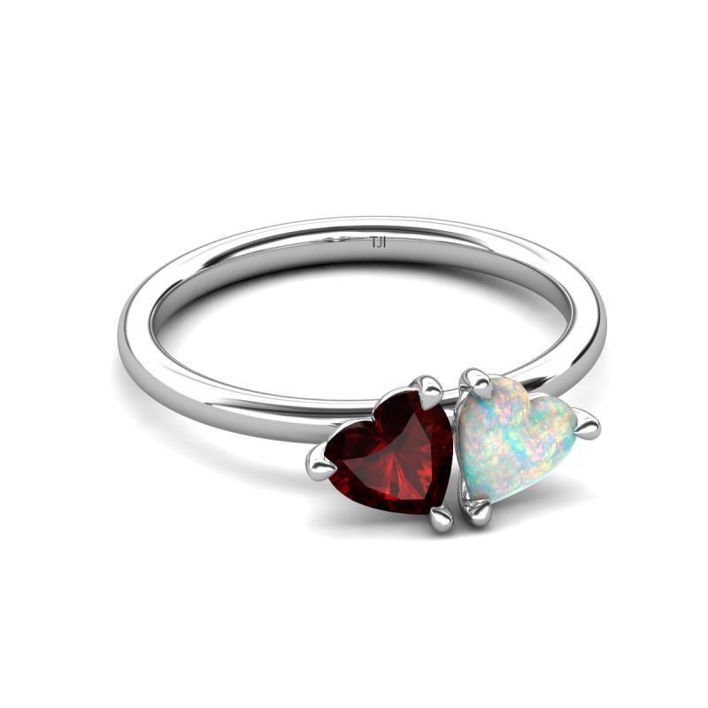 1.40 ctw Heart Shape (6.00 mm) Red Garnet & Opal with Tiger Claw Prong setting Two Stone Duo Women Engagement Ring in Platinum More Details ...