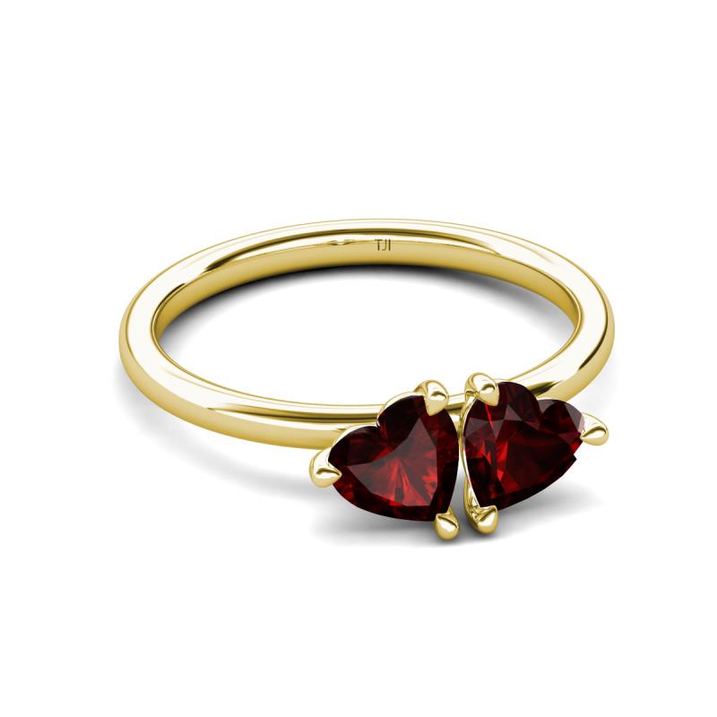 Celebrate your love with this stunning ring of 1.90 ctw features two heart-shaped Red Garnet nestled together in a "toi et moi" design & the unique tiger claw prong setting adds a touch of edginess and modernity to the classic design symbolizing the unity and connection between two people in love & a perfect choice for the fashion-forward bride.