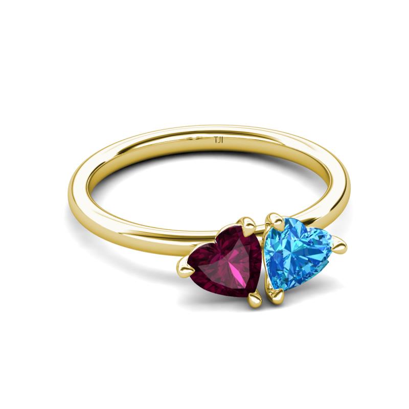 2.10 ctw Heart Shape (6.00 mm) Rhodolite Garnet & Blue Topaz with Tiger Claw Prong setting Two Stone Duo Women Engagement Ring in 14K Yellow Gold More Details ...