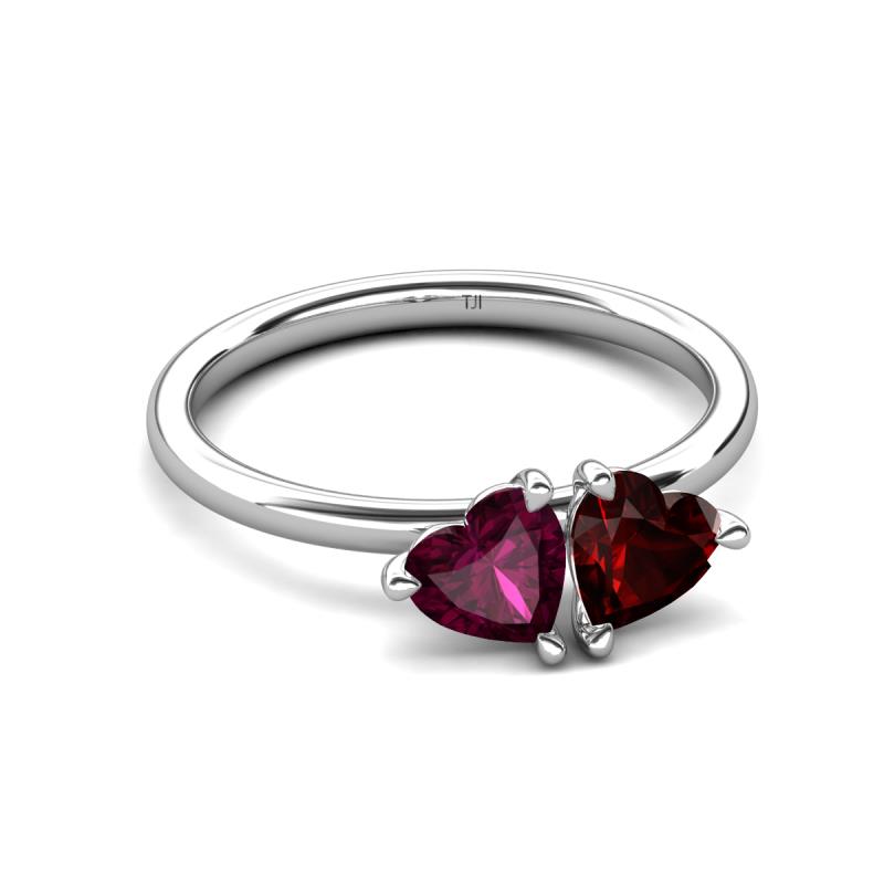 2.05 ctw Heart Shape (6.00 mm) Rhodolite Garnet & Red Garnet with Tiger Claw Prong setting Two Stone Duo Women Engagement Ring in 14K White Gold More Details ...