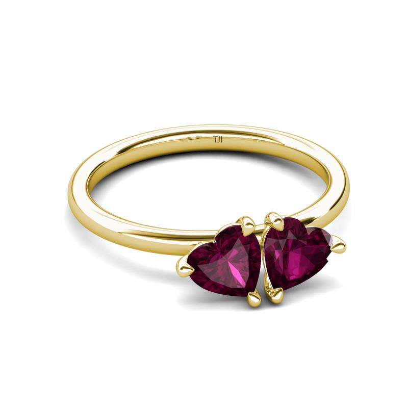 2.20 ctw Heart Shape (6.00 mm) Rhodolite Garnet with Tiger Claw Prong setting Two Stone Duo Women Engagement Ring in 14K Yellow Gold More Details ...