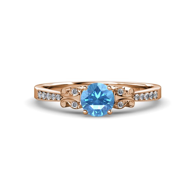 Take your first step to her with this stunning Butterfly Engagement Ring with Center Blue Topaz and Diamond nested in the scrolls and curves of this elegant ring following their way to the shank along with milgrain edges making your loved one feel adored.