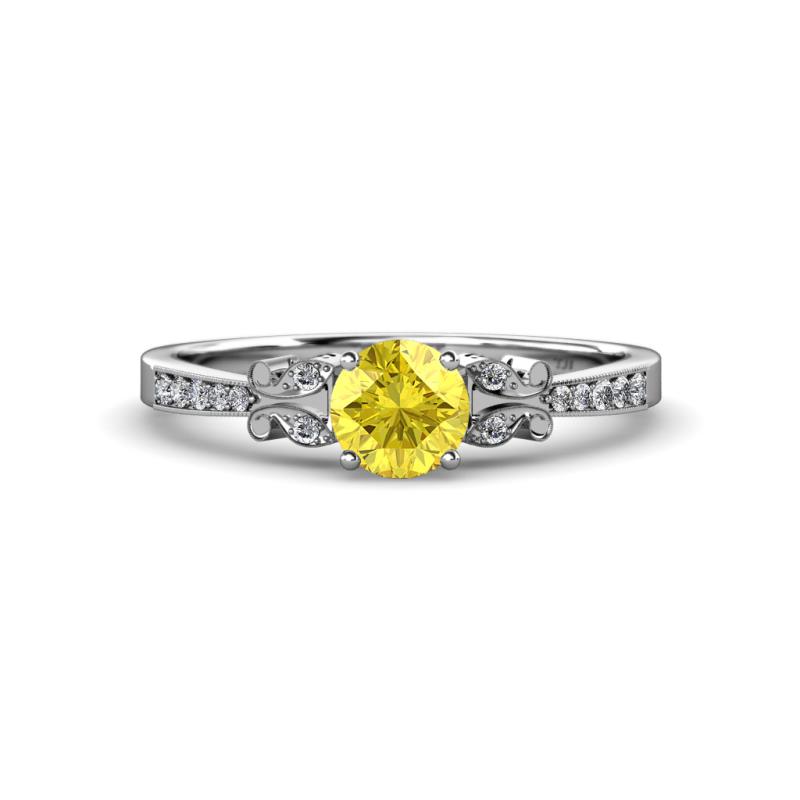 Lab Created Yellow Sapphire and Diamond 1.09 ctw Butterfly Womens Engagement Ring with Milgrain Work 14K White Gold More Details ...