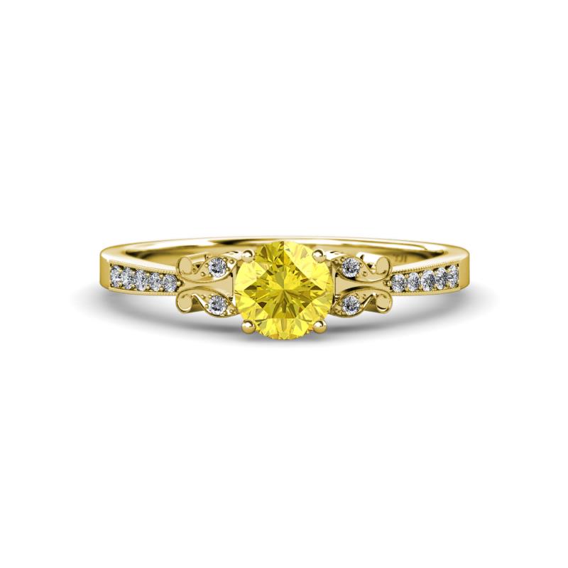Take your first step to her with this stunning Butterfly Engagement Ring with Center Lab Created Yellow Sapphire and Diamond nested in the scrolls and curves of this elegant ring following their way to the shank along with milgrain edges making your loved one feel adored.