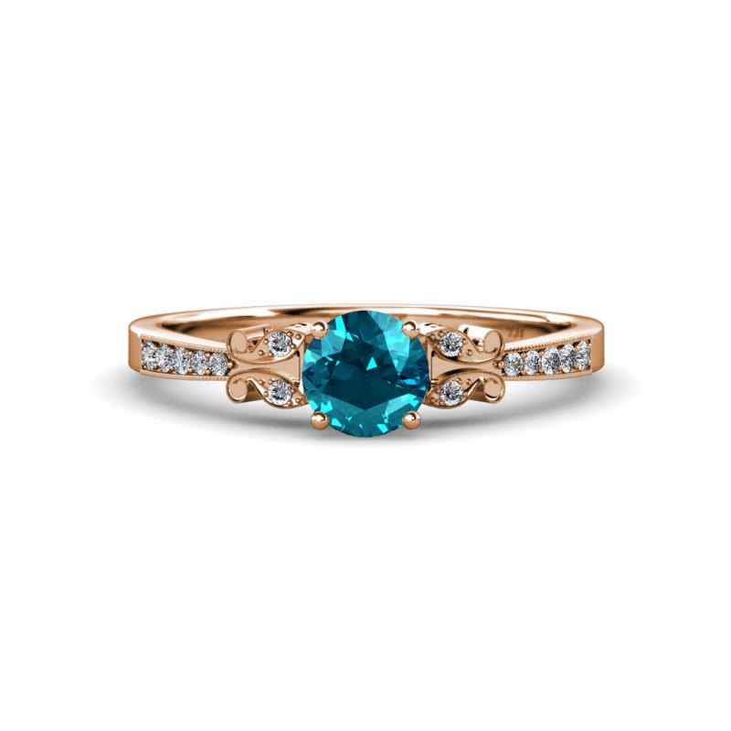 London Blue Topaz and Diamond 1.09 ctw Butterfly Womens Engagement Ring with Milgrain Work 14K Rose Gold More Details ...