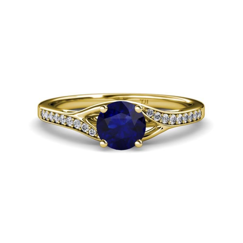 1 1/8 ctw Round Blue Sapphire and Diamond Bypass Womens Engagement Ring 14K Yellow Gold More Details ...
