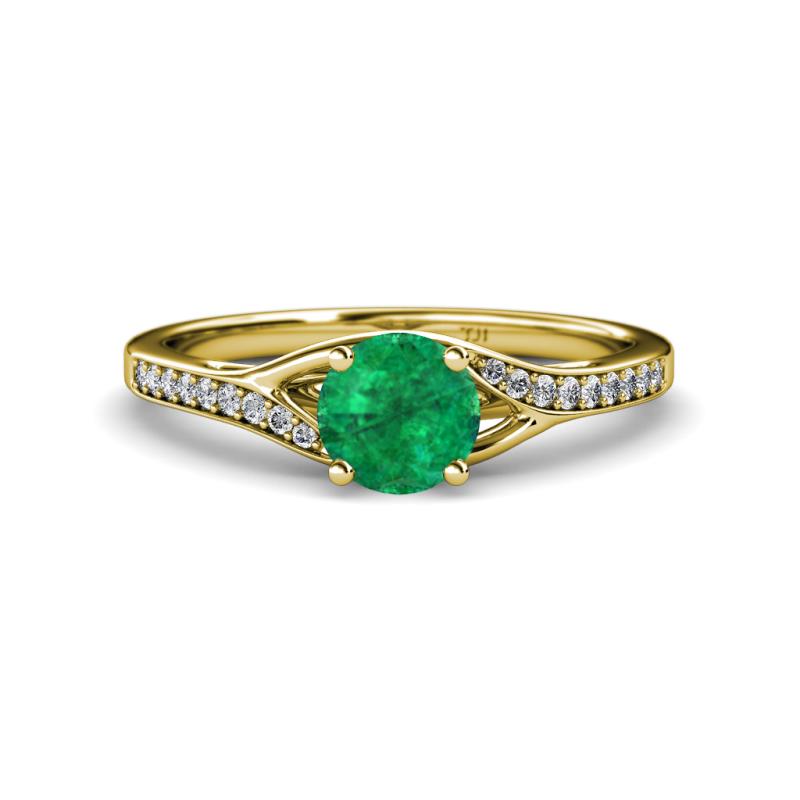 7/8 ctw Round Emerald and Diamond Bypass Womens Engagement Ring 14K Yellow Gold More Details ...