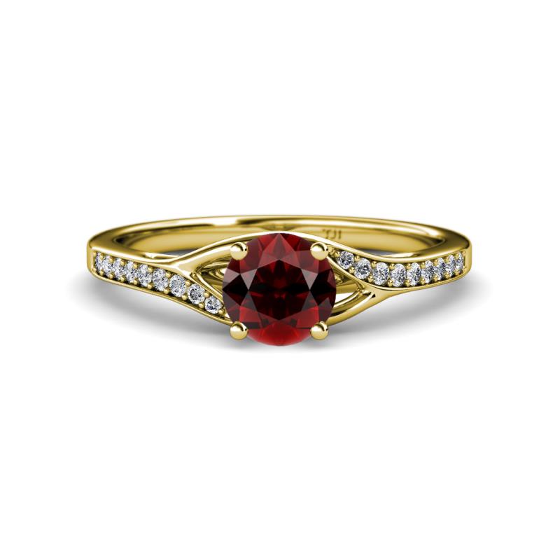 1 ctw Round Red Garnet and Diamond Bypass Womens Engagement Ring 18K Yellow Gold More Details ...