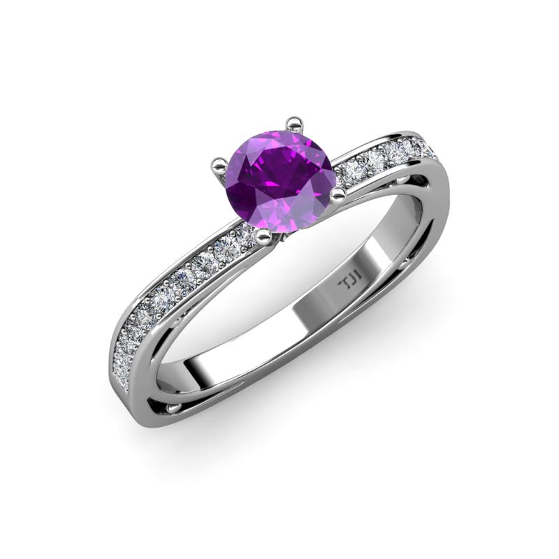 Classic and elegant, this 0.97 cttw Engagement Ring offers a unique twist on tradition which Centers Amethyst and small round diamonds flank the Euro Shank design adorning the graceful shank making it an ideal choice for a loving proposal.