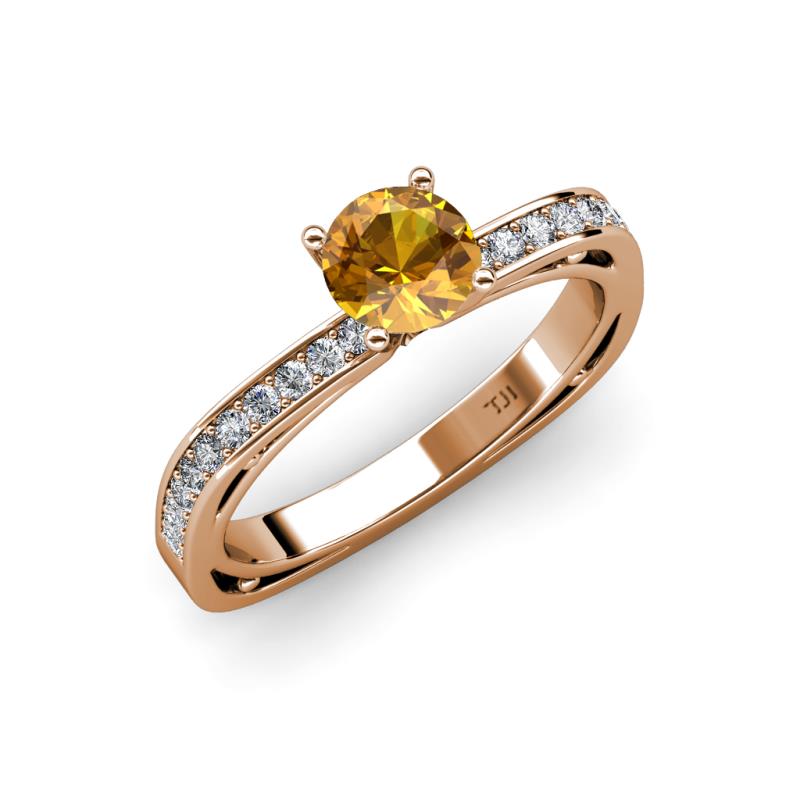 Classic and elegant, this 0.97 cttw Engagement Ring offers a unique twist on tradition which Centers Citrine and small round diamonds flank the Euro Shank design adorning the graceful shank making it an ideal choice for a loving proposal.